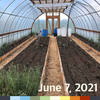 So for the last four years or so, I get my soil ready but do not put anything in before June! This year I was also fortunate to go camping several times which left me with only a short timeframe from June 1 to June 7 in the morning to get everything ready and plant and sow my garden and the greenhouse! Not too much time especially with the added complication of extreme weather conditions. A heat wave made it impossible to plant young fragile plants and I had to wait till almost the last day to put these in the ground. Laying out my drip irrigation system was step 1. Of course for whatever reason my timer for the garden decided to not function properly anymore. So I needed to hunt down another unit. I was in luck and found one fairly quickly. This job was done during the hottest part of the day. The gardening took place early in the morning and late at night. It was quite a job but I got her done in time. Worked till June 7 at noon and all seeds and plants were in, water was running and the weather was supposed to be a bit more reasonable for the week to come. So I left with my conscience at ease. Kind of forgot about it during the trip till we were heading back. I started to get really curious about how my gardens were faring....... and I was so amazingly positively surprised. I had bean plants that were 10 cm high, potatoes that were 25 cm high and most rows were visible. That was a really impressive site that made me feel very content. Cabbages however were very fragile when they wnet in and the ones that made it are still struggling. I know however that they will be okay. I will for sure be able to harvest a good cabbage in due time. I will fill up some of the empty spaces with more kale, spinach, beans and peas. This food will all freeze vey well and can be kept for quite a while in the freezer. Please judge for yourself and see how rewarding a bit of gardening can be.